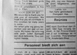 Cor and I liked to do things that were a bit different; sometimes for the better, sometimes for worse. But by far the best things were made up by the people of Cor-rupt; in shenanigans, in music, and in events. One of the best surprises was the party for the one-year anniversary. We were picked up by a large crowd including a marching band and a police-escort, and walked together to Cor-rupt where Hilde and Netta were waiting for us with flowers, cake and coffee. And no work for us! The ‘bar service’ was done by Eva, Menno and many others. The only thing we were allowed to do was celebrate. Where can you find such ‘customers’ and how happy and proud can one feel?
