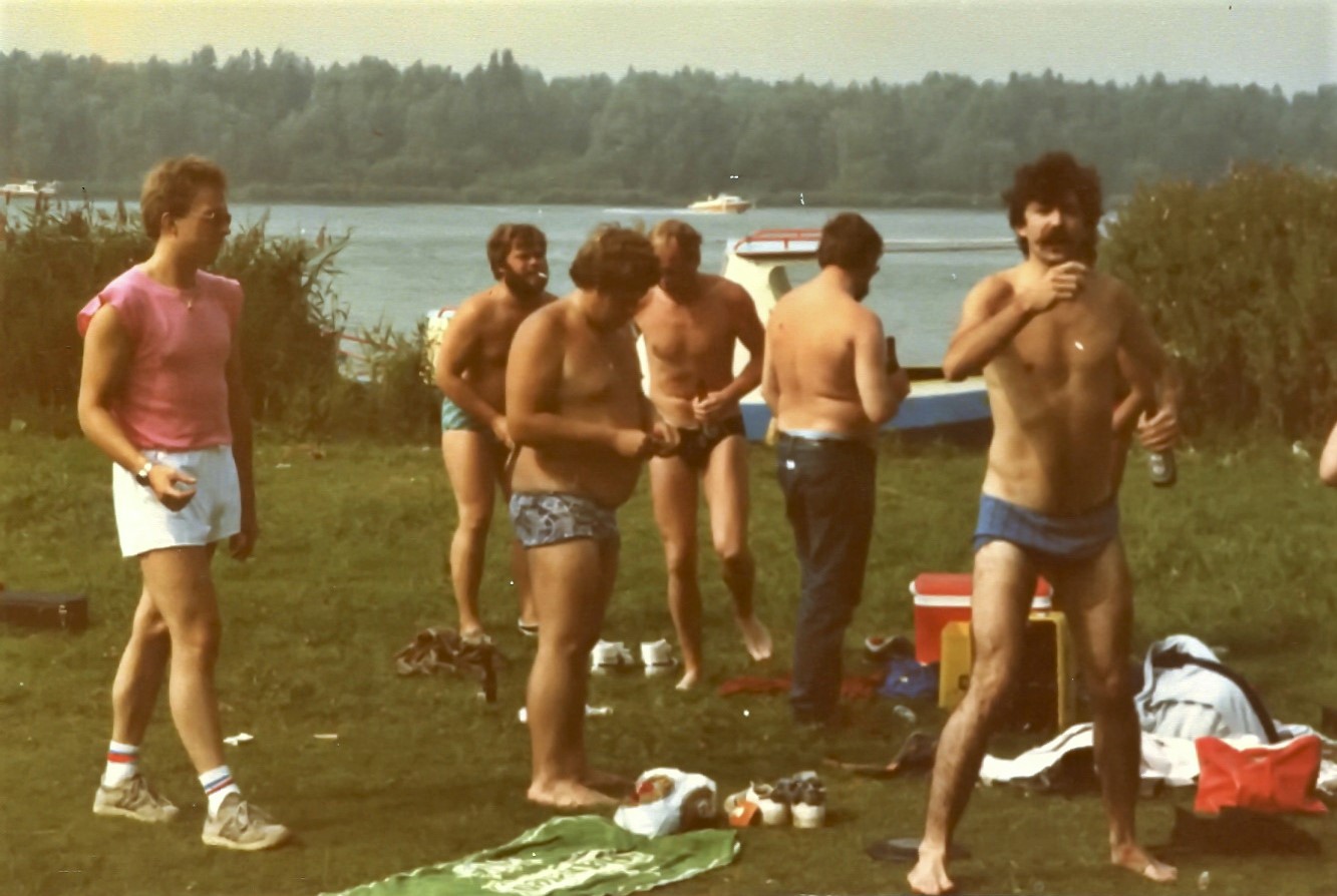 We had one car, a lot of bicycles, a tram (yes, it was still there) and a boat, Pierre’s tugboat. In the car went the dogs, the rugs, the inflating equipment, towels, etc. Provisions and most importantly the Grolsch and the wine went on Pierre’s tugboat. Nowhere in the bos was a boat welcomed with such enthusiasm.